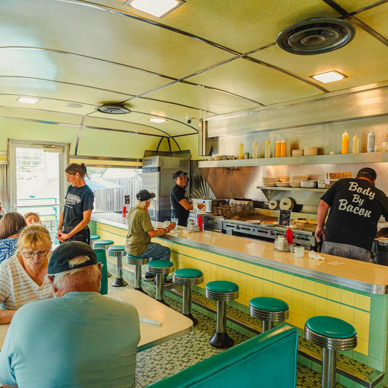 Great eats served up fresh in an authentically restored 1950s diner! Broadway Diner is a 1954 fully restored vintage Silk City Diner built by the Paterson Vehicle Company out of Paterson, NJ. In 1954 fresh off the assembly line the diner found its home in Groton, Connecticut were it operated from 1954 to 2005 under the names A & P Diner, Twin Bridge Diner, Bridge Diner and Rosie’s Diner. The Castree family purchased the diner and took pride in having it restored to its former glory, giving the Silk City Diner a new lease on life.